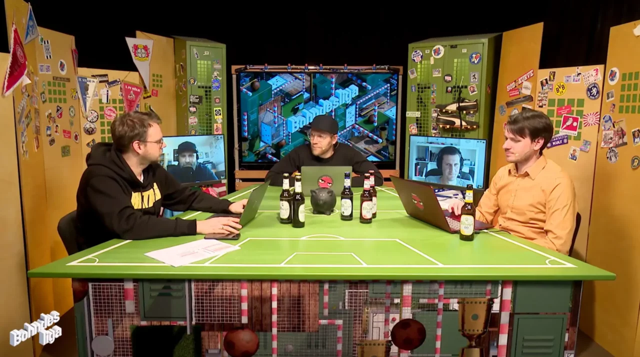 Die 0,0-Produkte von Bitburger sind immer mit dabei, wenn die Bohndesliga-Crew zum wöchentlichen Talkformat bittet (bis 2022).
