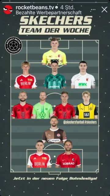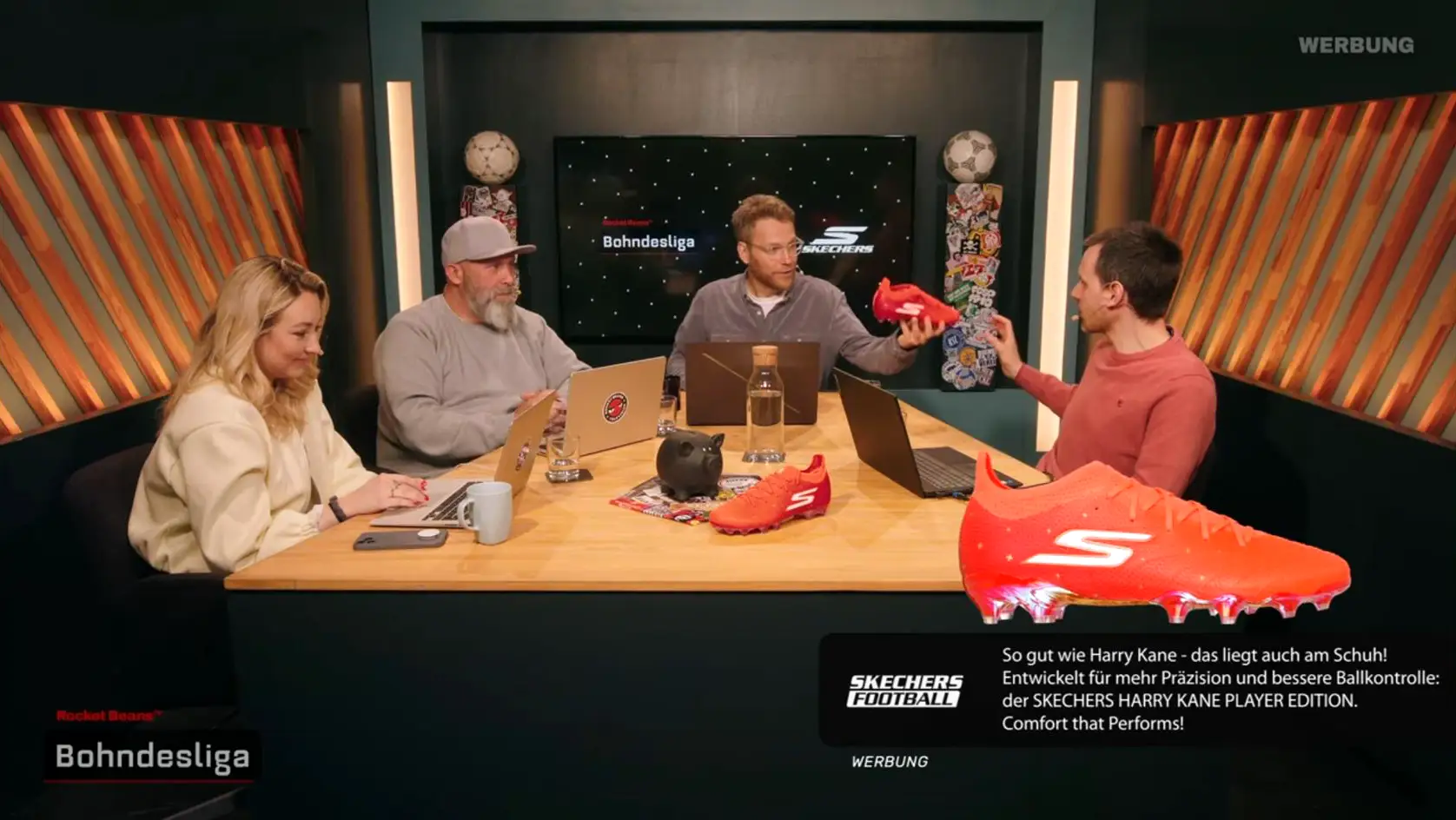 arry Kanes Fußballschuh von SKECHERS ist im Studio präsent, wenn die BOHNDESLIGA Crew über das Bundesliga-Wochenende philosophiert. SKECHERS präsentiert zudem das TEAM DER WOCHE in der Sendung.